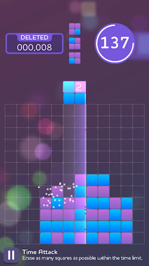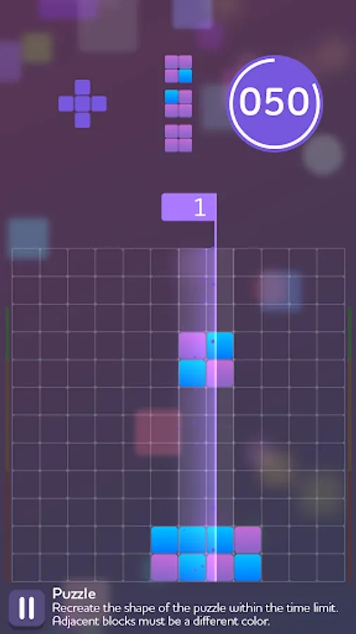 - Puzzle - Recreate the shape of the puzzle within the time limit. Adjacent blocks must be a different color.