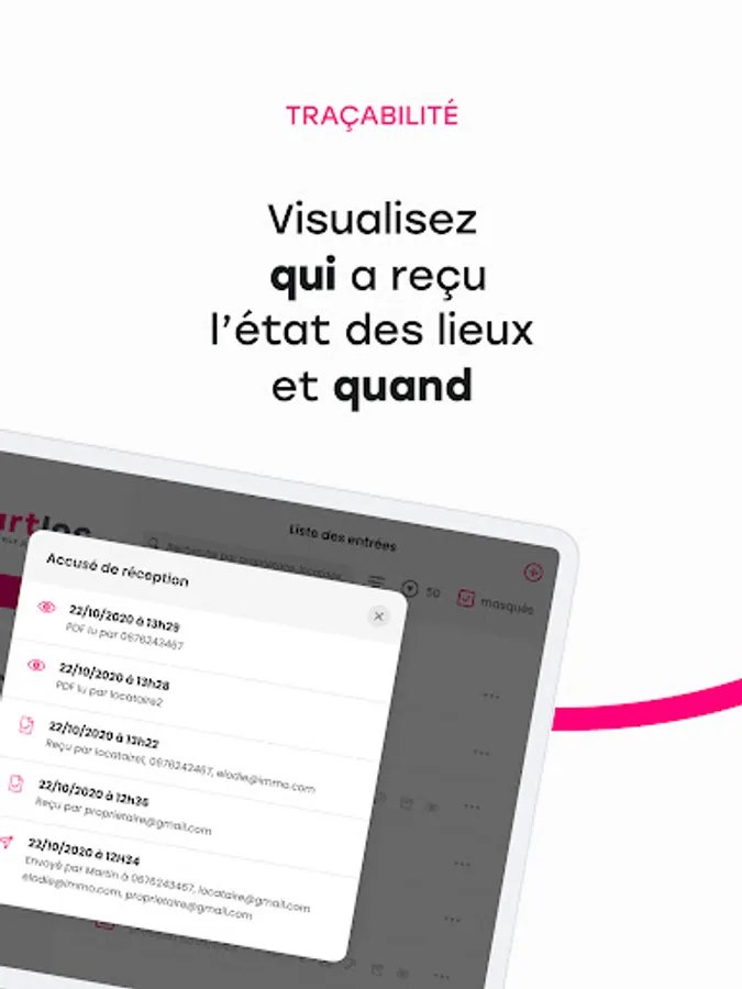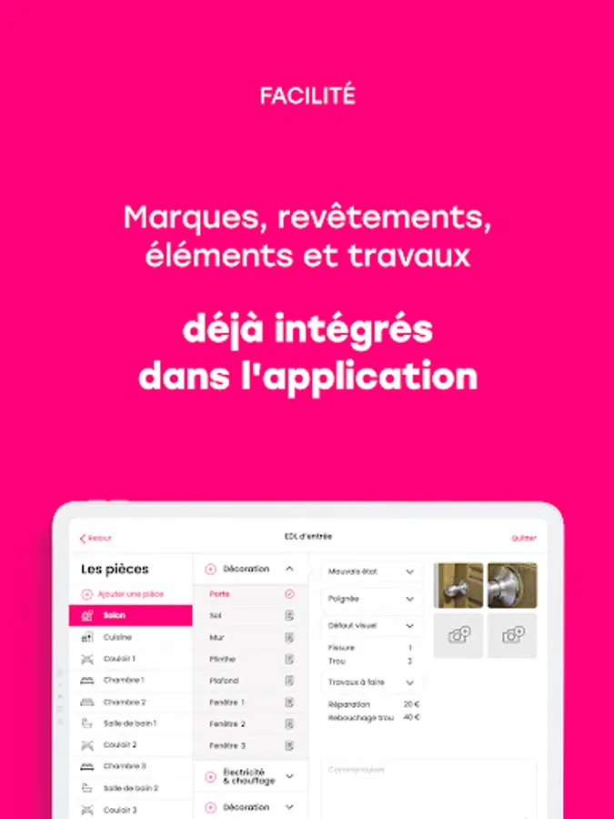 This professional inventory application is recommended by 9 out of 10 customers. It particularly appeals to real estate agents, diagnosticians, notaries, concierges, bailiffs, developers and student residences.