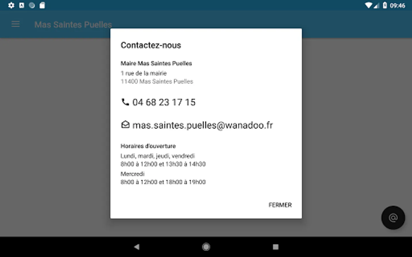 The town hall broadcasts for you information and news of Mas-Saintes-Puelles. You stay informed of city activities and do not miss any information and event.