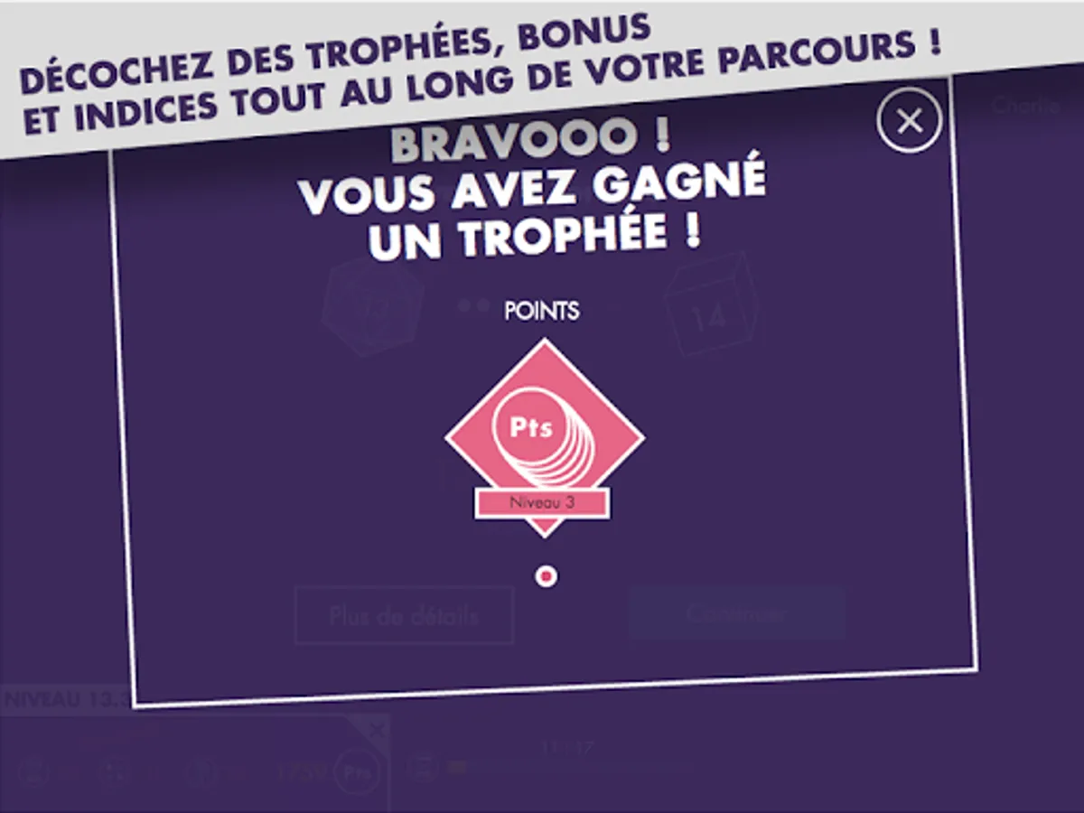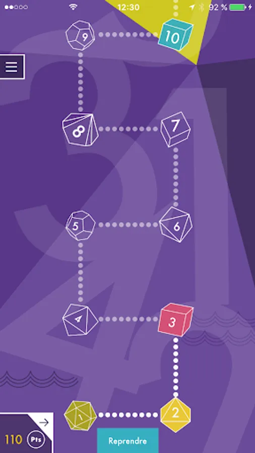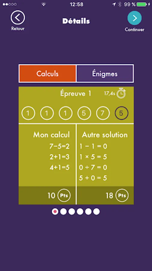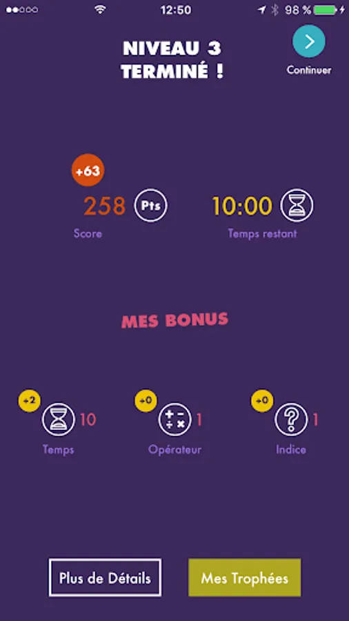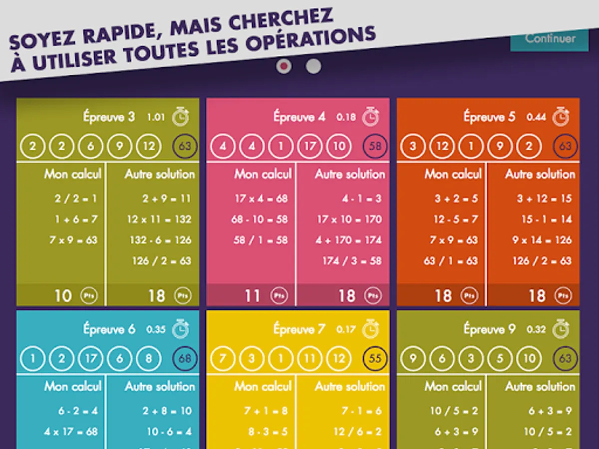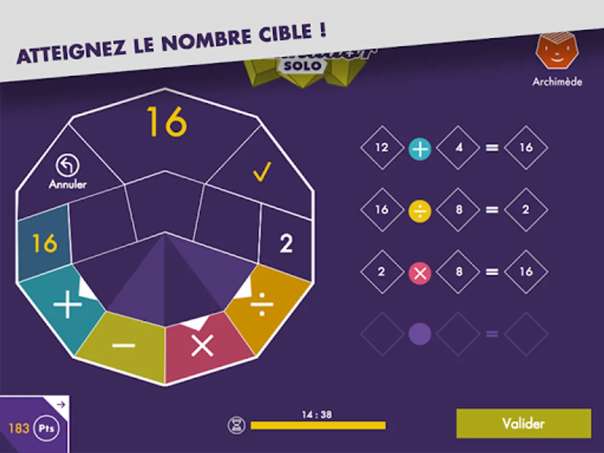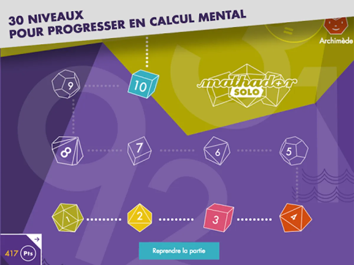 Thanks to a progression adapted to the pace of the player, Mathador Classe Solo is ideal for perfecting your skills in mental arithmetic. 30 levels of increasing difficulty, 3 entry points for mastered difficulty.