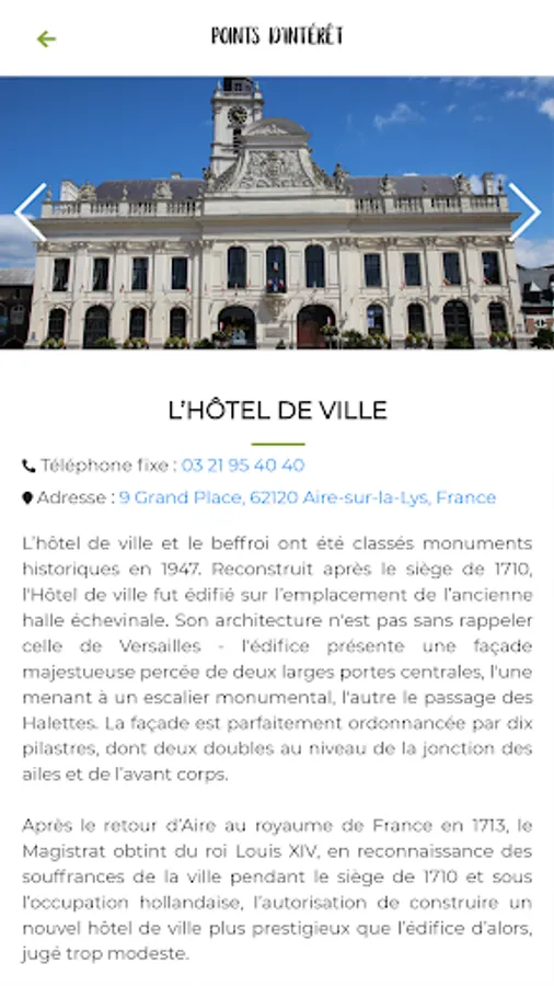 The application Aire-on-the-Lys allows you to consult the news of the city, the agenda of the demonstrations, the schedules and addresses of the municipal services, the permanence of your elected officials. The application also offers SmartServices for the population: notification center, consultation of the interactive plan of the city.