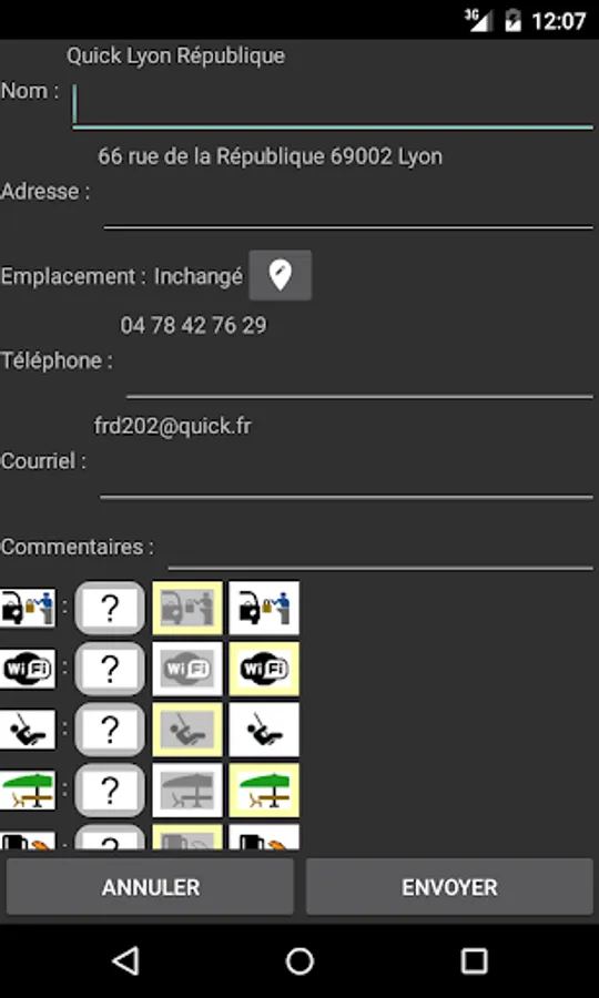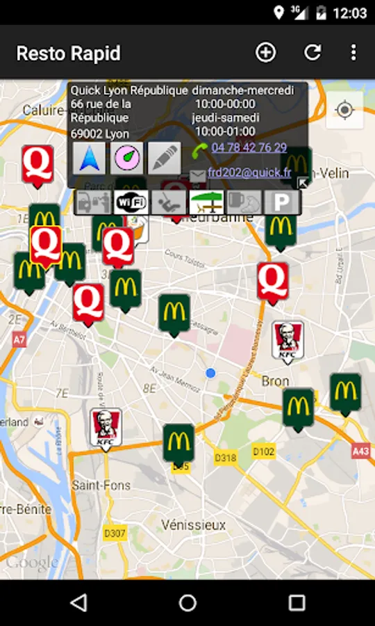 ★ a link to launch the Google Maps Navigation for guidance on the way to the fast food