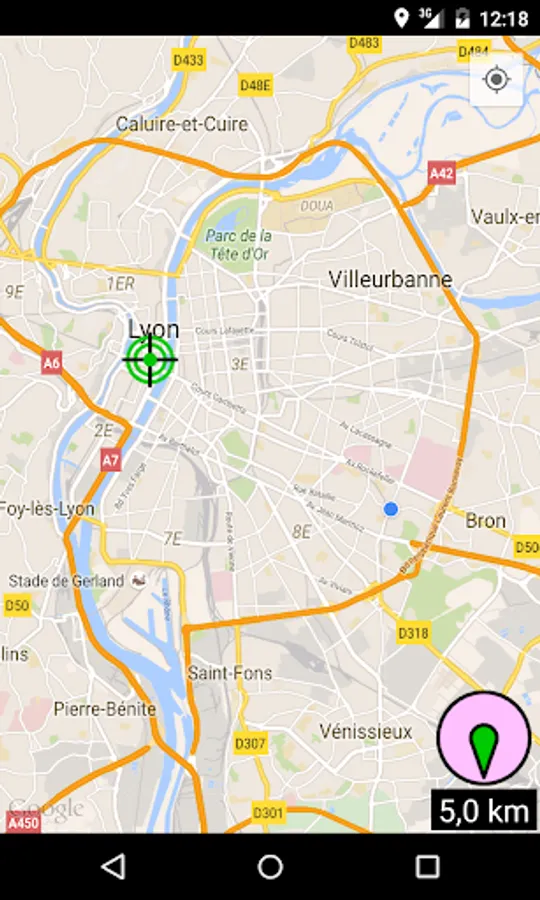 A button allows you to center the map on your current position.