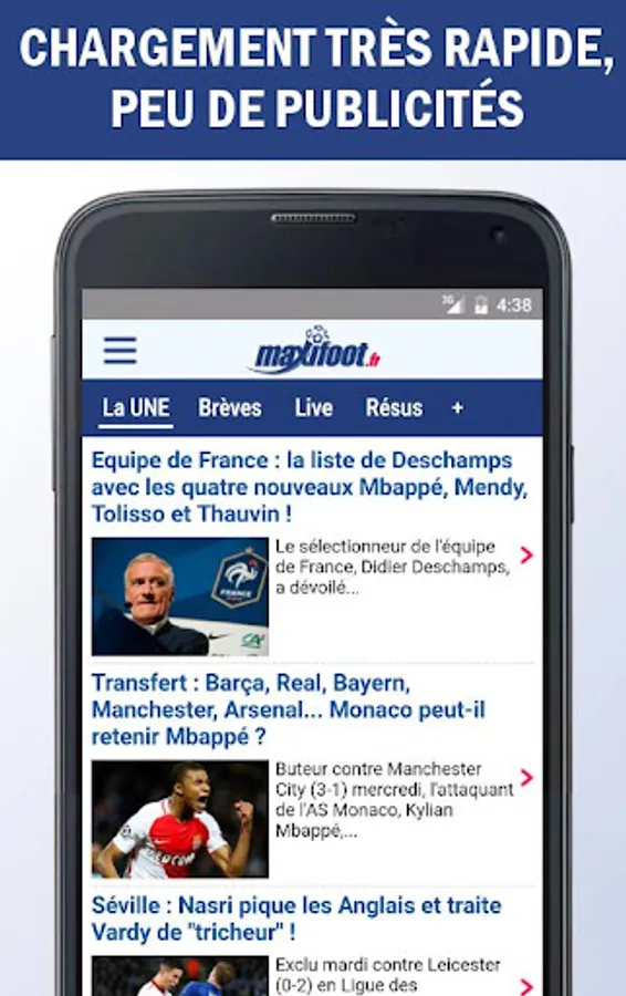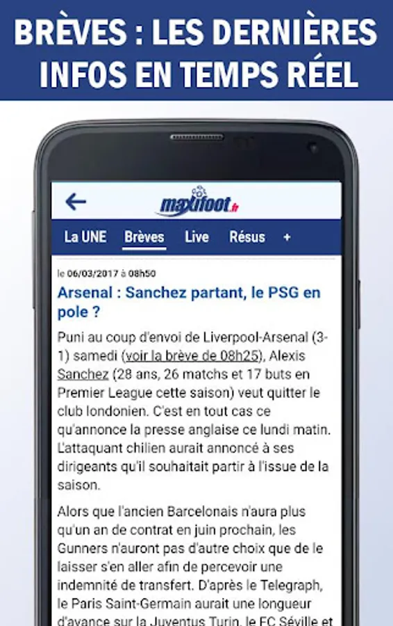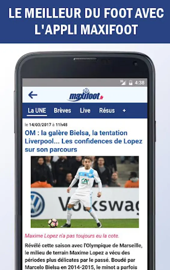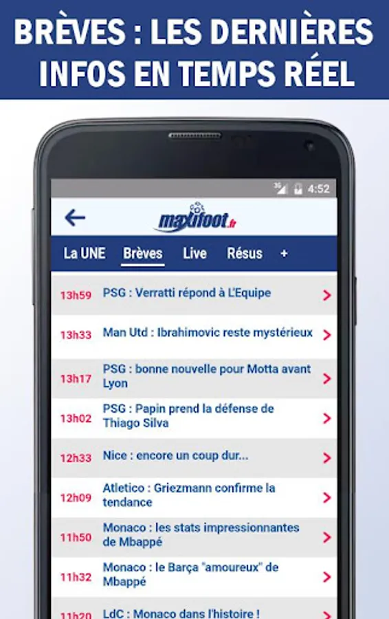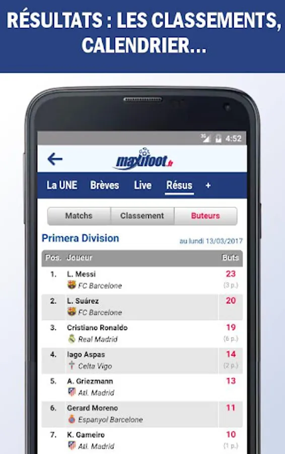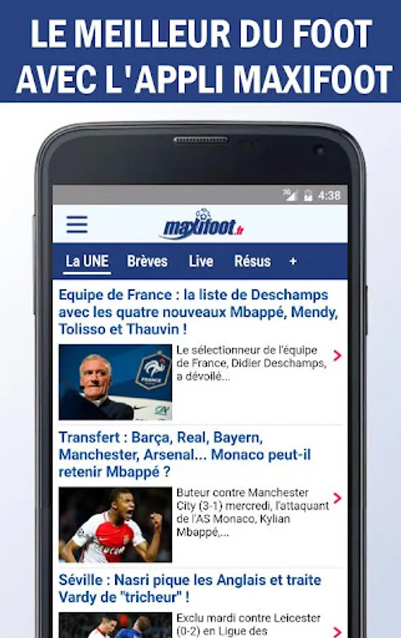 The official football application of the famous Maxifoot site (http://www.maxifoot.fr) which records more than 600 000 visits per day.