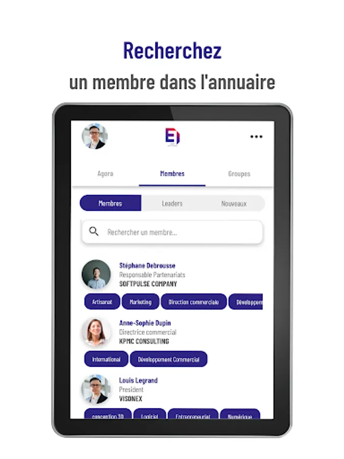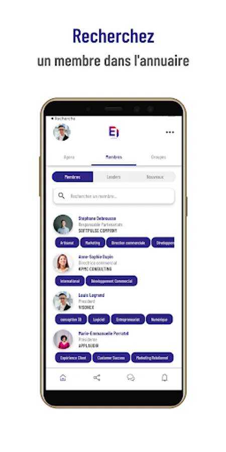 Easily search for a member of the community by last name, first name, company, skill, location... The essentials to facilitate your networking!