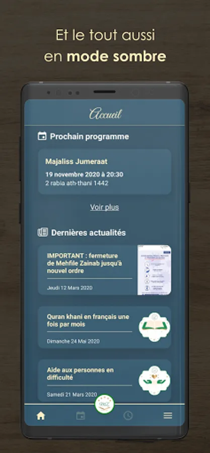 Programs: Access the list of the latest programs in a completely new design by directly seeing past or upcoming programs. The programs are now more complete with the Marhoums of the week directly in the programs of Majaliss Jumeraat!