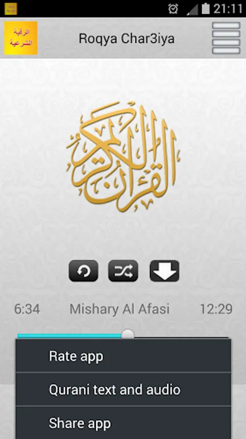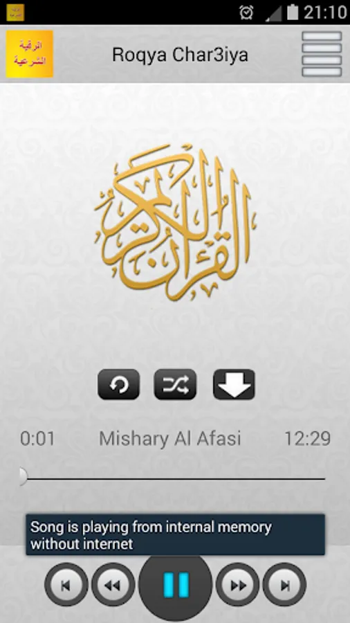Once Roqya is downloaded , you can listen the roqya without internet connexion