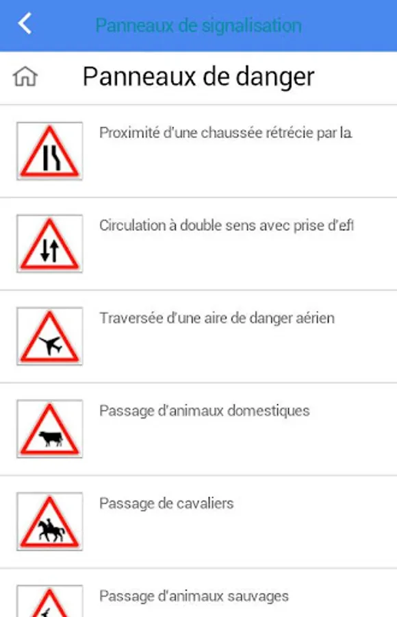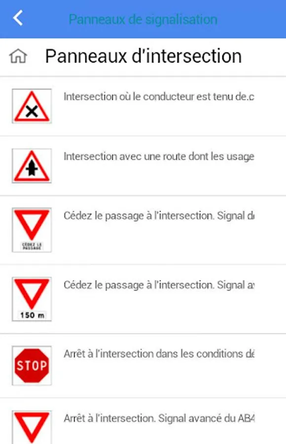 100% free! List of main road signs and their meanings, simple and accessible without internet connection. Test your knowledge or review your driving license exam.