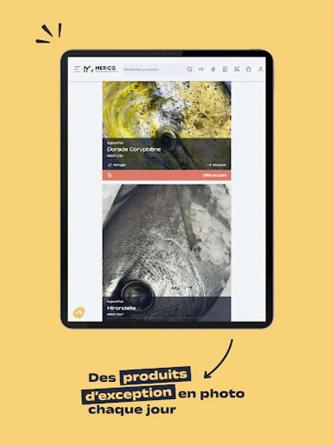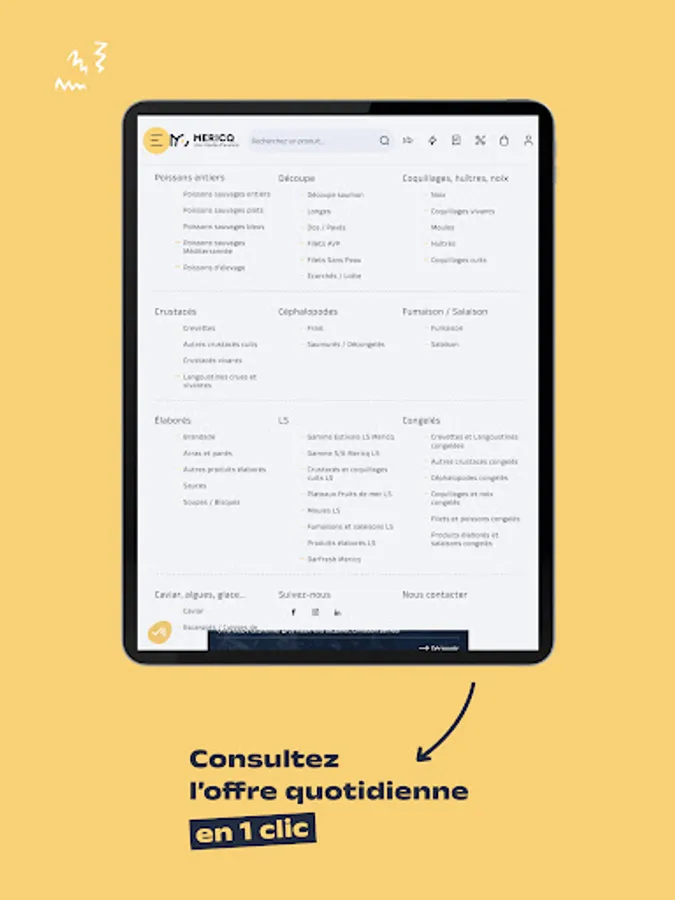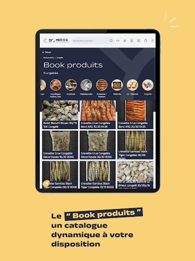 The Mericq application is THE professional platform for ordering your seafood products in just a few clicks, 24/7. Mericq offers you the widest range of seafood products on the market, updated in real time.