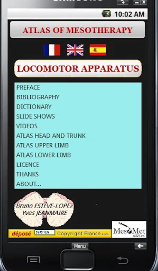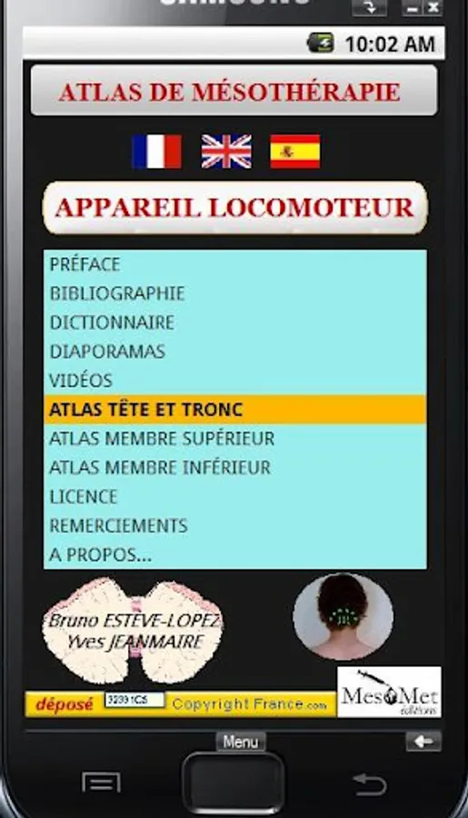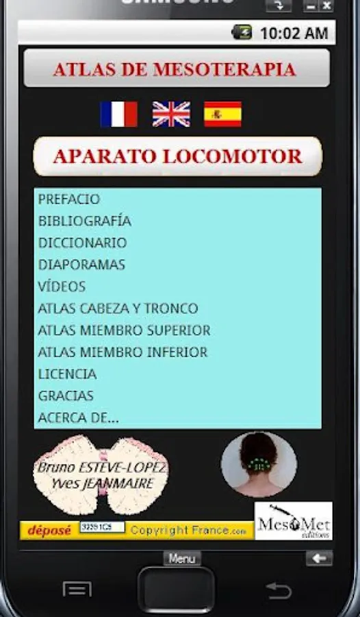 It is part of a group of four applications of mesotherapy forming Atlas complete Mesotherapy for Android which will be described in all anatomical landmarks, the injection site with photos, slideshows and videos to fully understand the technical mesotherapy as it is taught at the University.
