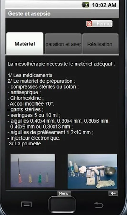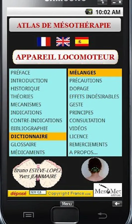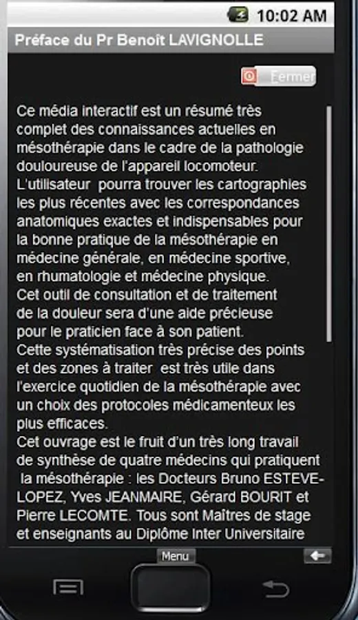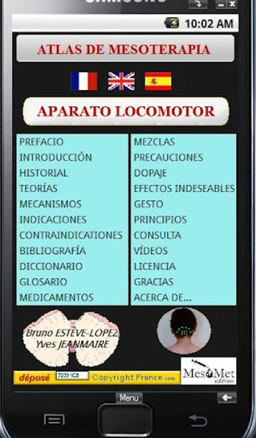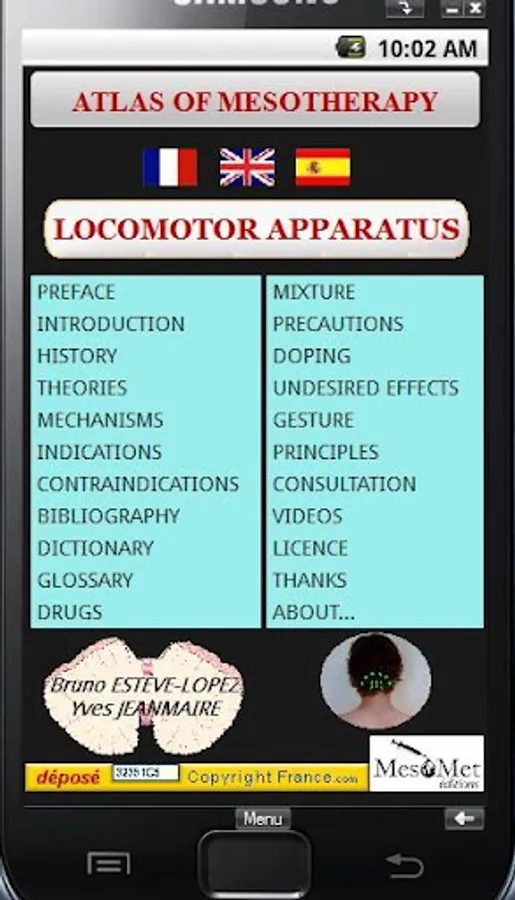 It is part of a group of four applications Mesotherapy Mesotherapy forming Atlas for Android which will be described in all anatomical landmarks, injection points with photos, slideshows and videos to fully understand the technique of mesotherapy the locomotive as it is taught at the University unit.