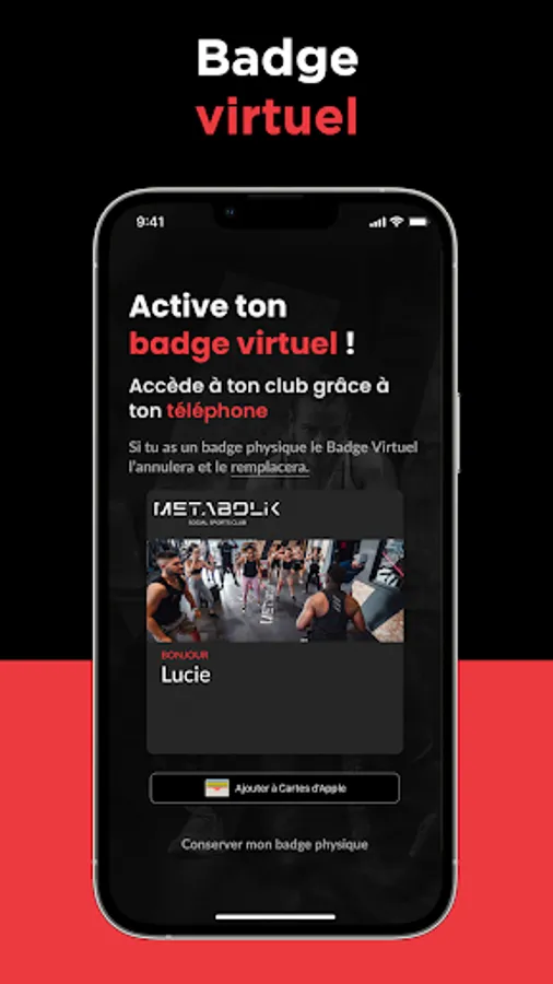 - Virtual badge: Access your club with your phone thanks to the digital badge