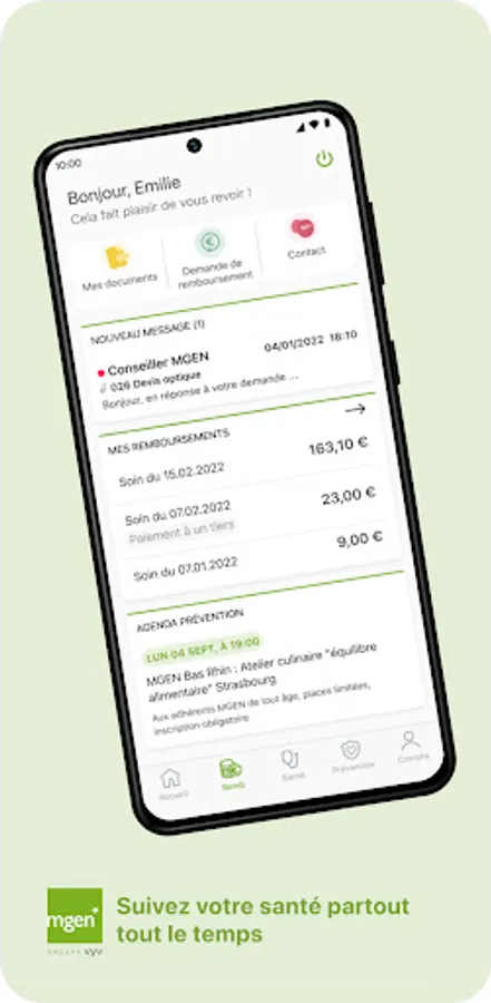 Consult your health and provident insurance reimbursements, download your statements of benefits and your certificates of entitlement, send a message to your adviser, ... With the MGEN application, manage your health coverage on a daily basis and access the essential features of your Personal Space. Before downloading it, check if the application appears on the back of your membership card.