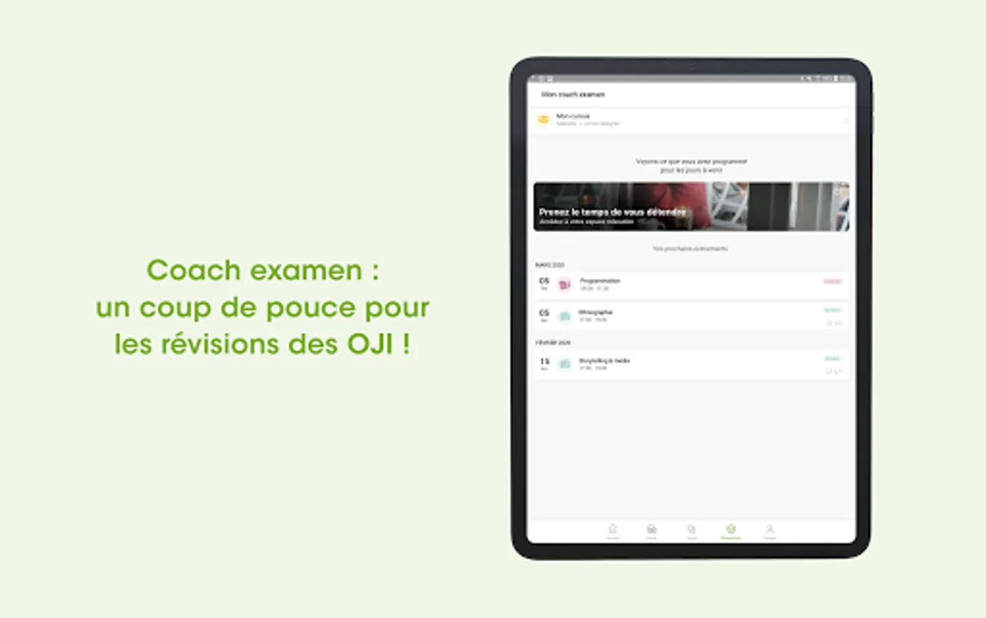 - I prepare for exams with the Coach: I plan my reviews and exams. But I also take time to relax. An entire program ! Permission will be requested to add and sync Coach Exam events to your phone's calendar