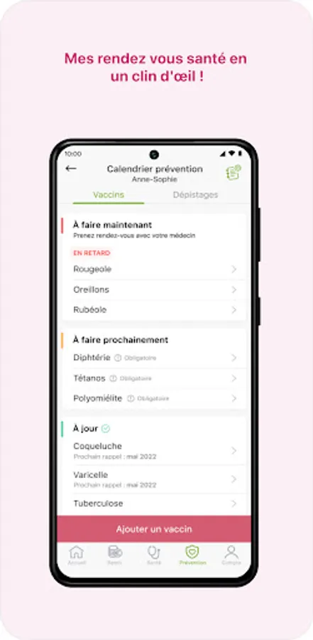 - I easily save my vaccinations and screenings already carried out and I subscribe to notifications in order to plan my next appointments