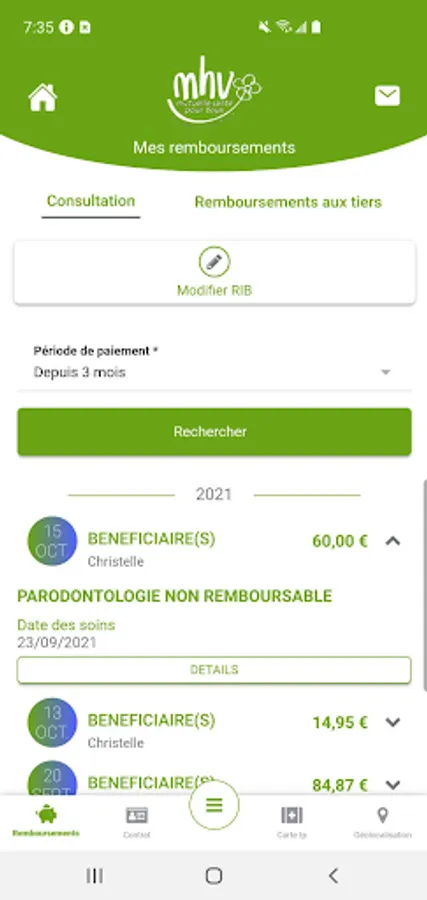- Real-time consultation of your reimbursements, for you and your beneficiaries,