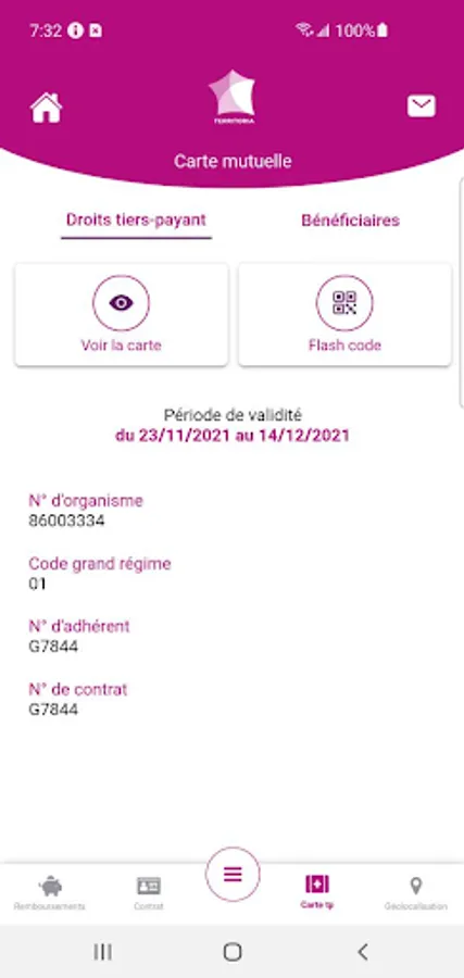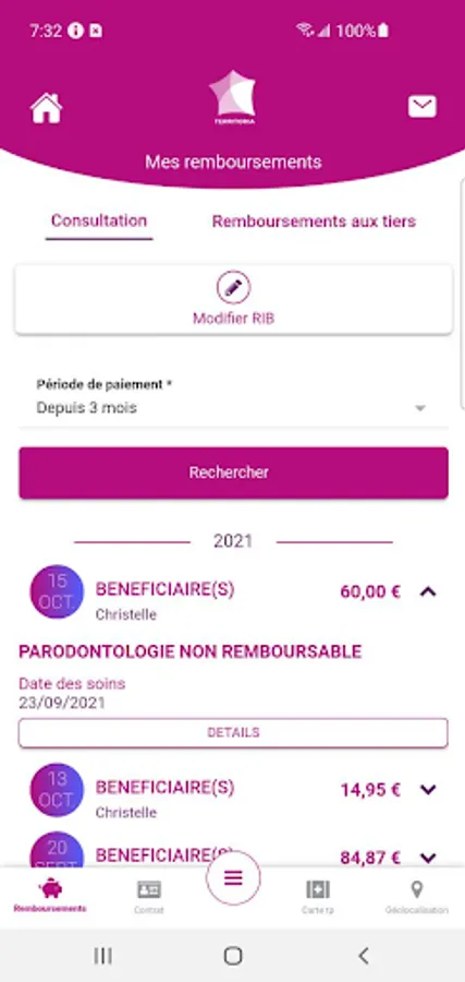 - Real-time consultation of your reimbursements, for you and your beneficiaries,