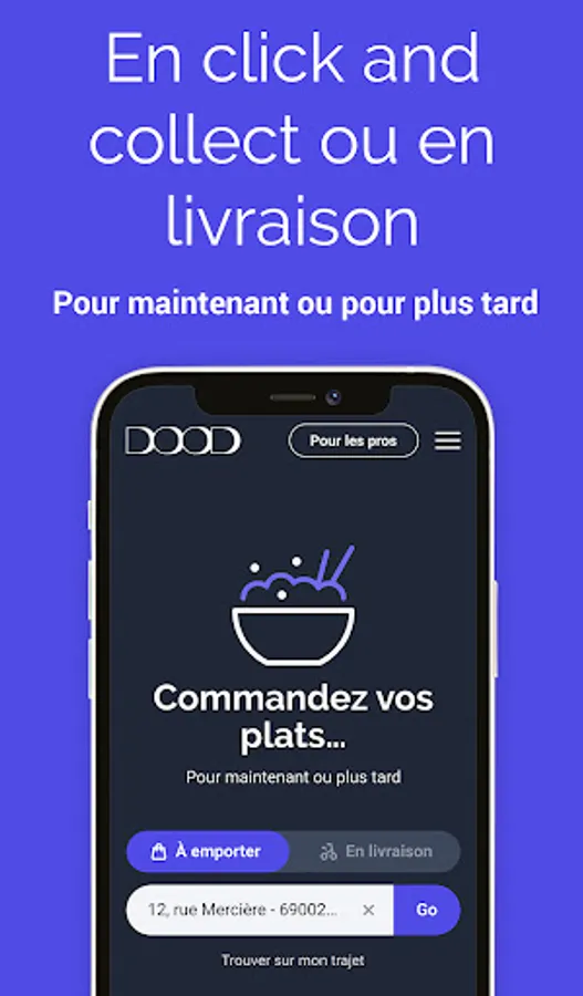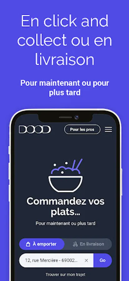 The DOOD application is the best way to order and book at your restaurants and your favorite merchants in click&collect and delivery anywhere in France.