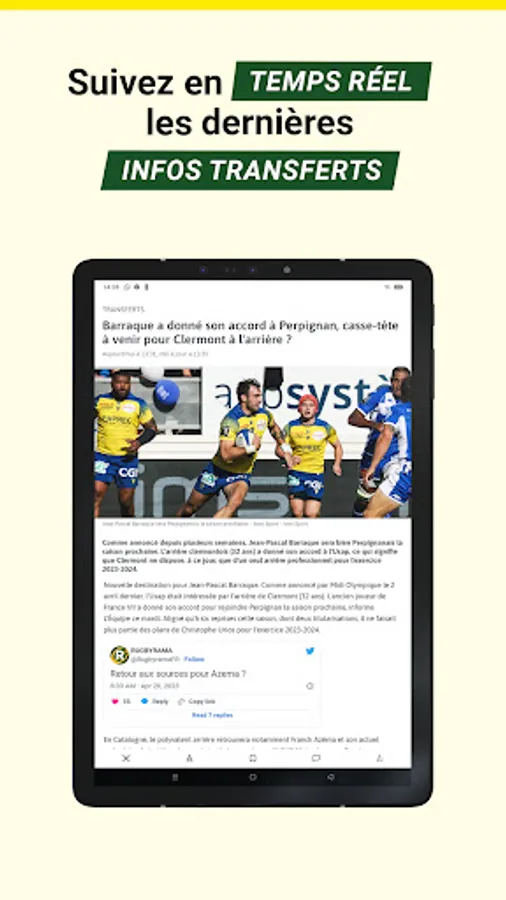 “The application allows us to know the upcoming matches, transfers and all the rugby news. Incredible application” Eyrian (February 2023)