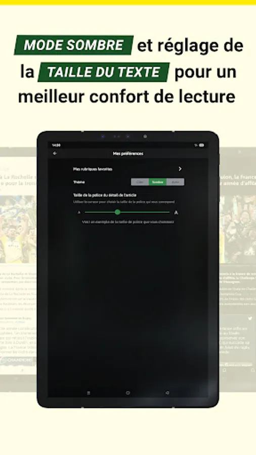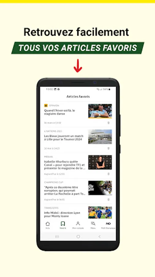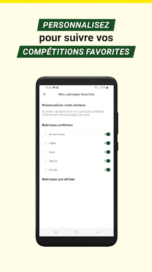 - Receive personalized notifications according to your preferences: XV of France, Top 14 (Stade Toulousain, RCT, Stade Français…), Pro D2, Amateurs, Transfers, Major competitions, Internationals, European Cups
