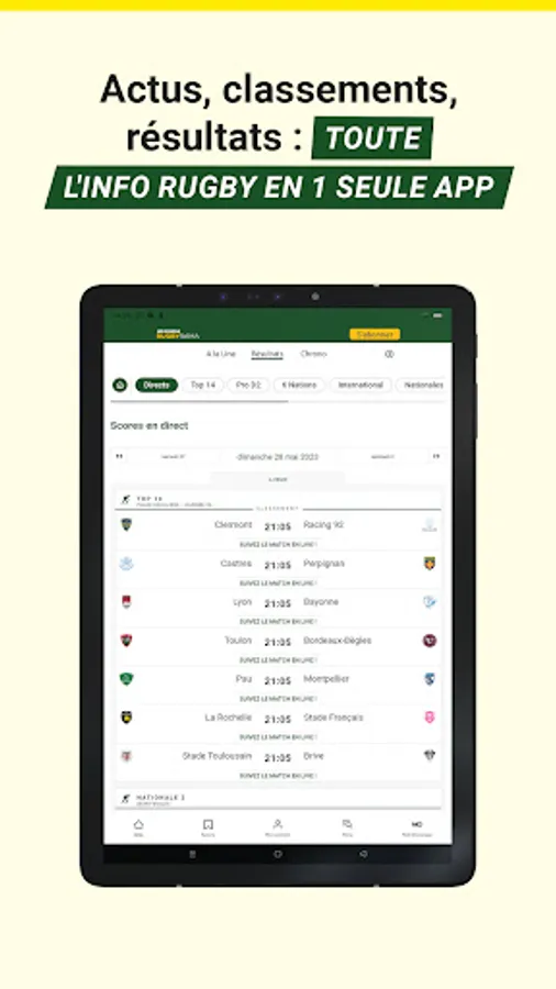 - Create your personalized news feed by following your favorite clubs or find all the news by competition: Top 14 (Stade Toulousain, RCT, Stade Français, etc.), Pro D2, 6 Nations, European Cups, Women's, Rugby League and at VII, Federal…