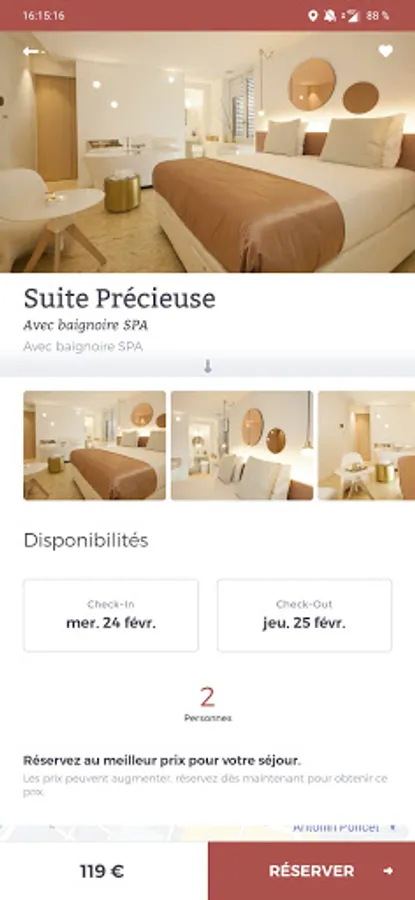 Connected suites, digital, upscale, everything you can dream for a leisure, family or business. They are all decorated differently, from 25 to 75 m2, some with fireplaces, Jacuzzi baths, swings, swings and for all: king size bed, Nuxe products, Nespresso offered! Visit the Suites before booking through the 3D tour.
