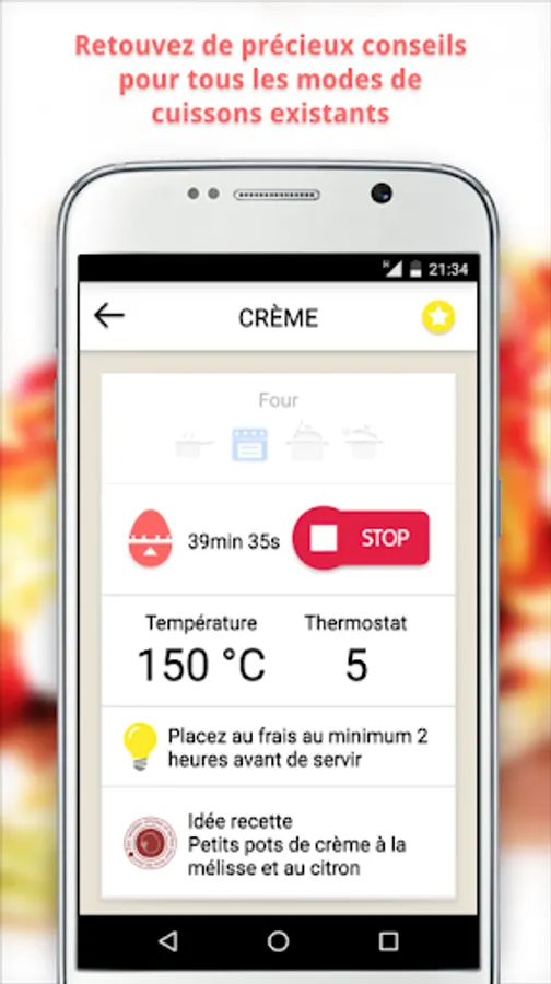 - Ideal cooking time proposed by the application and validated by our culinary blogger