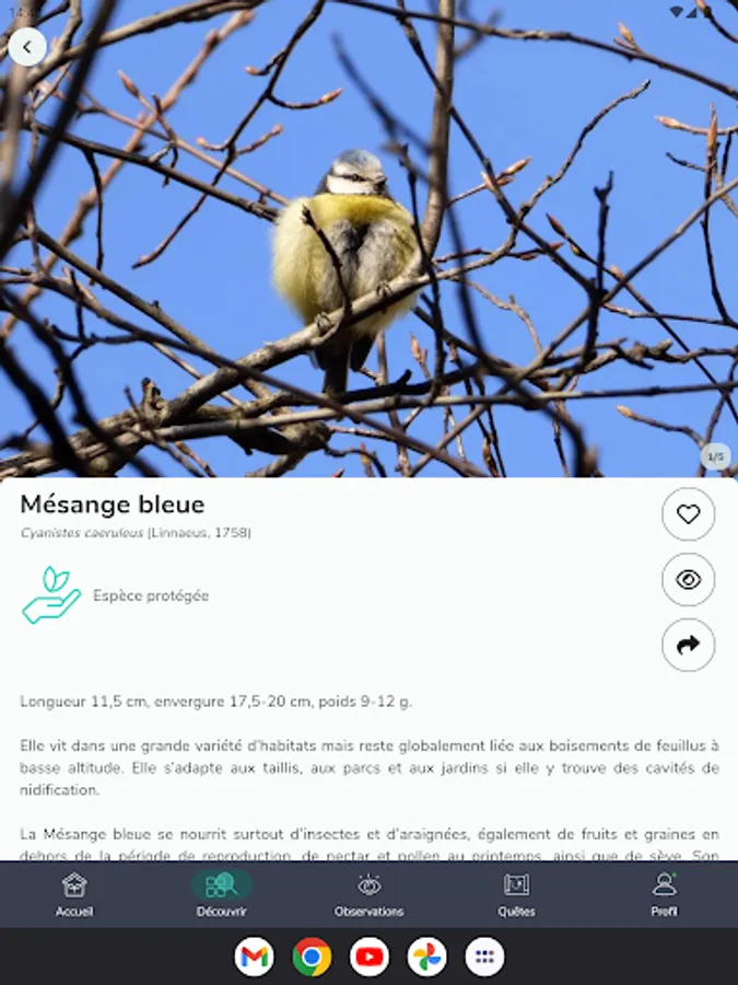 The INPN species mobile application allows you to discover the diversity of species present around you from your mobile and share your observations with experts. Curious about nature, enthusiasts, schoolchildren, take part in the inventory of the biodiversity of your municipality whether you are in mainland France or overseas!