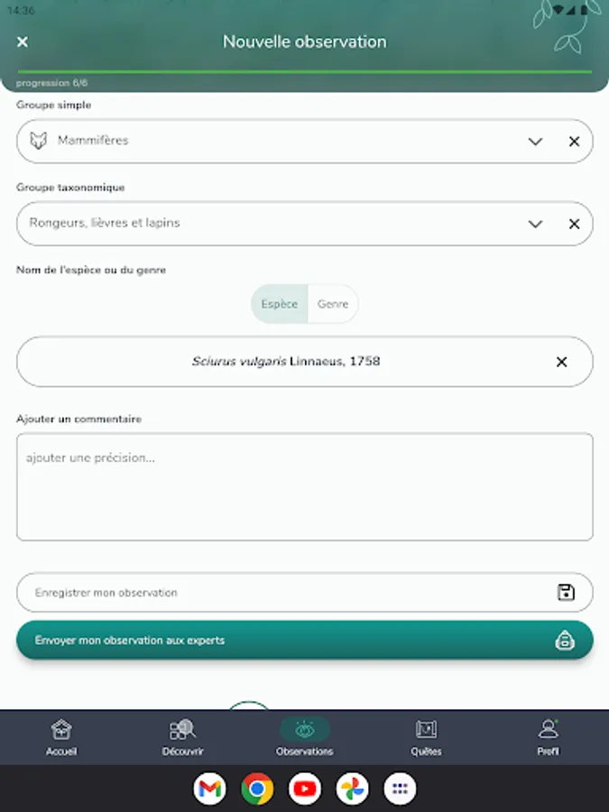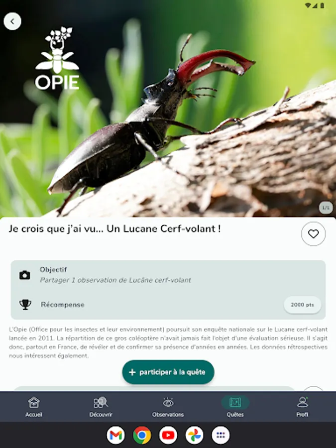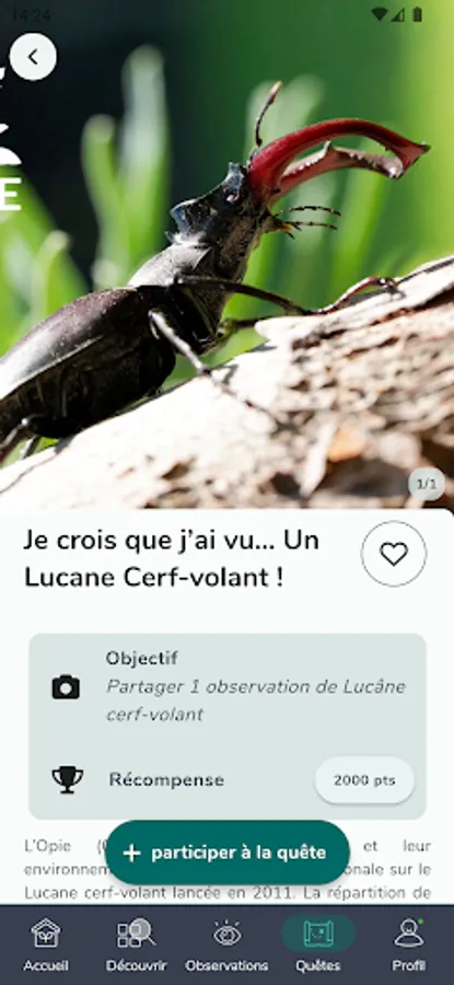 Finally, quests are offered to answer a scientific question concerning a particular group or species. The data collected will allow experts to better understand the ecology, distribution or life cycle of the targeted species.