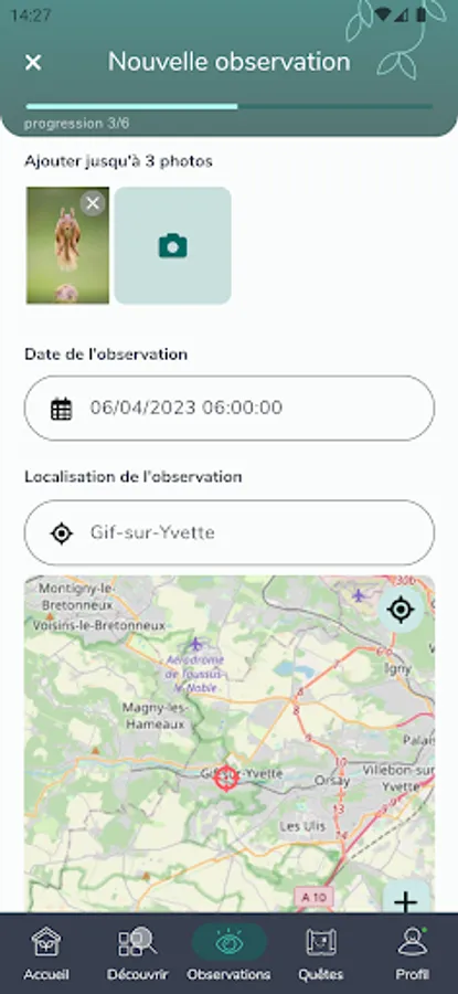 - inform the experts about the date and place of the observation using the "geolocate" function or by manually entering the name of your municipality;