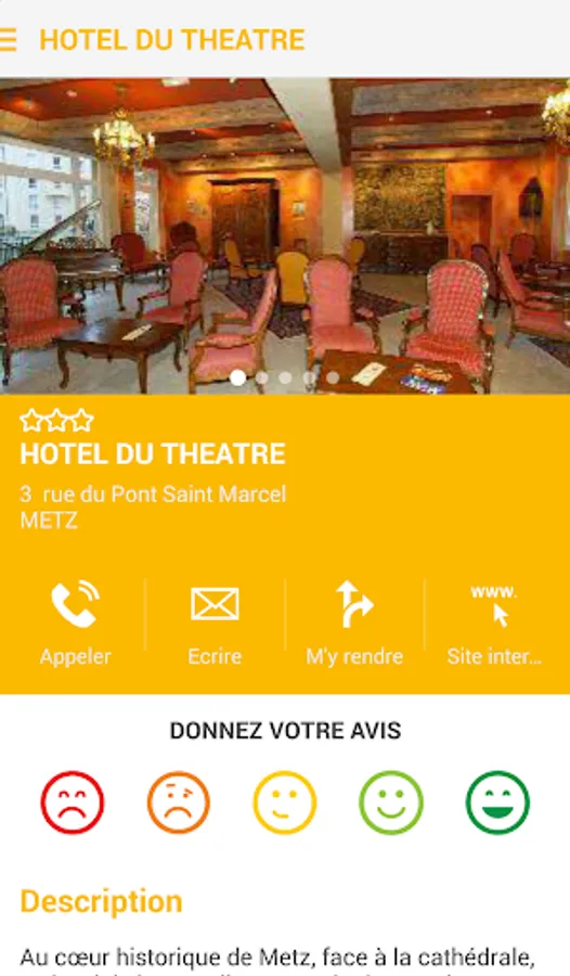 With TOUR METZ, find the best selected by the Tourist Office (museums, hotels, restaurants, shopping, entertainment, events ...). With one click, contact them by phone, email or text message before you get there through routing.