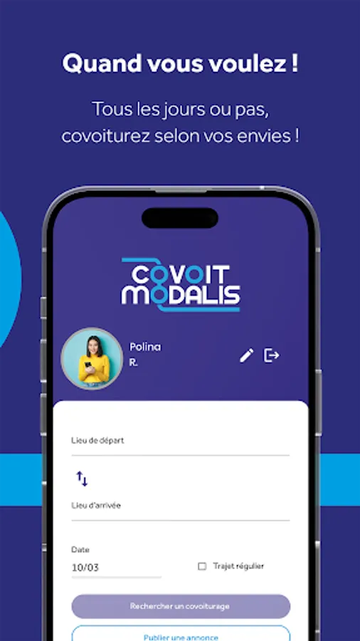 COVOIT MODALIS is a free and secure local public service to help you get around easily on a daily basis. COVOIT MODALIS is the local carpooling app with Nouvelle-Aquitaine Mobilités: