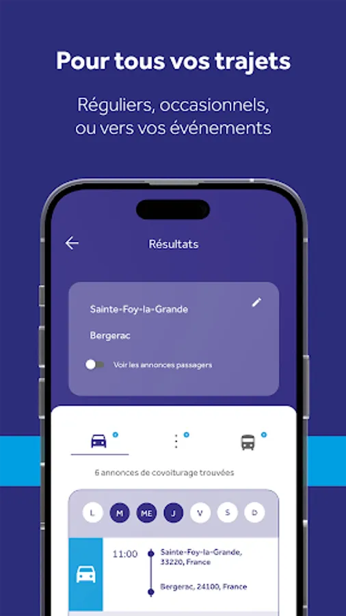Carpool locally thanks to the ecological, economical and user-friendly public service.
