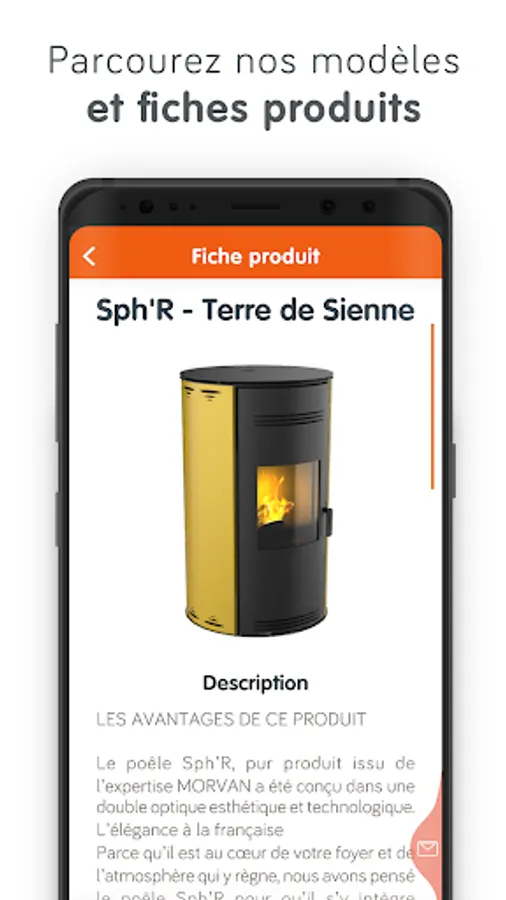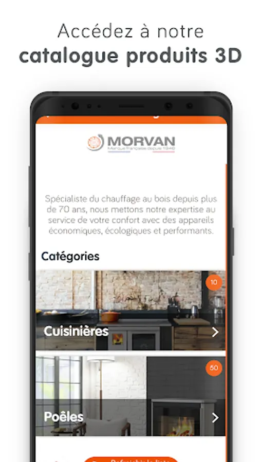 Because the choice of your wood-burning appliance is important and you want it to take place harmoniously in your home, we offer, thanks to augmented reality, to give life to your interior by testing at home and at the location of your choice our models. You will be able to play with the different shapes, finishes and colors offered for a perfectly neat integration. And for an even more informed choice, also access general and technical information relating to each model. With the MORVAN Home app, the comfort of natural heat comes to your home.