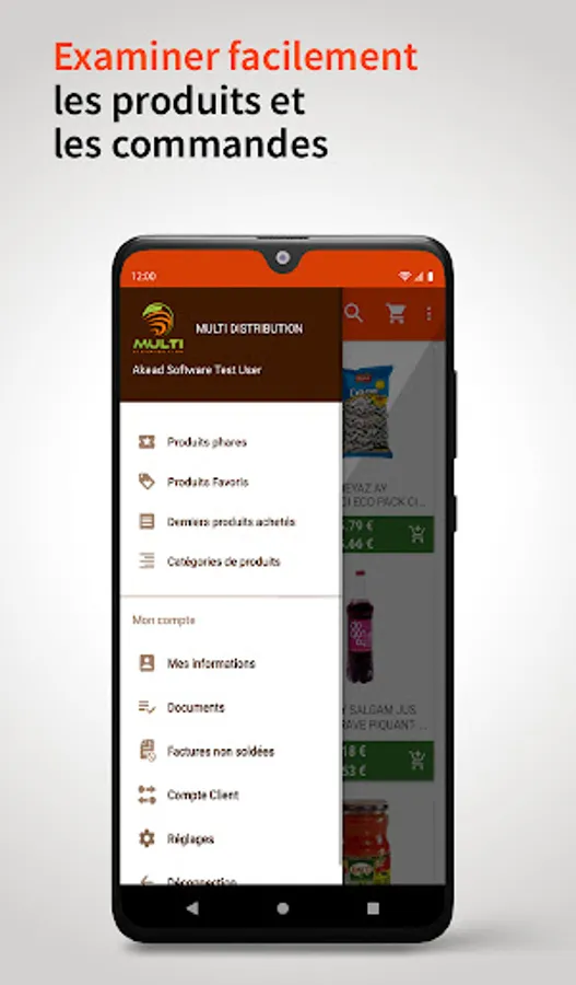 This application allows our customers to place orders very easily: order taking, follow-up, invoice status, list of favorites ...