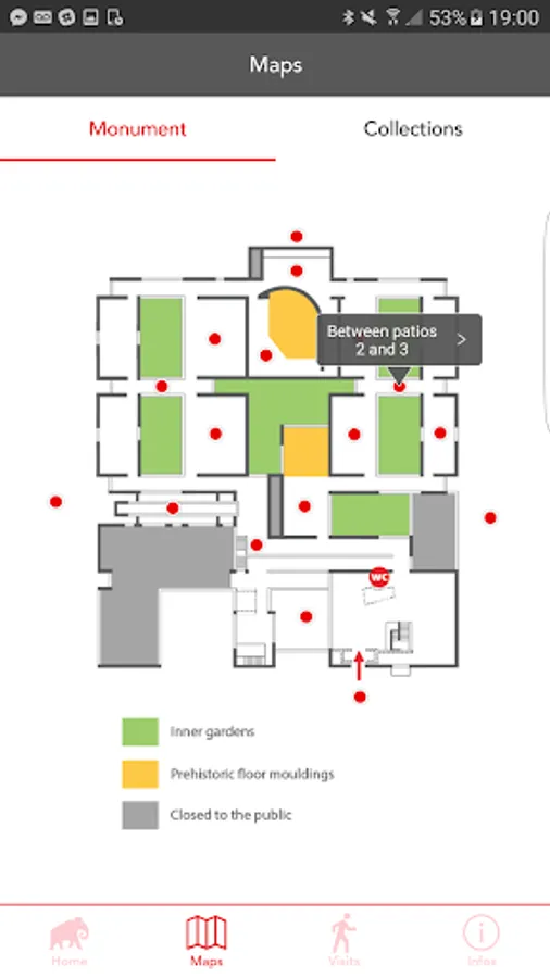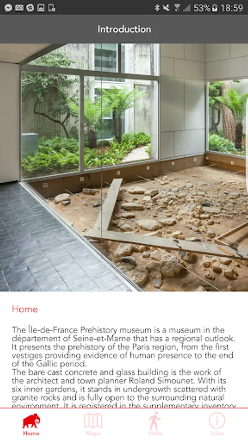 Consequently, this application, which comprises 400 pictures, is composed of two different visits: one dedicated to the archaeological collections, and the other to the architecture of the building. The first one is a commented one hour tour of the museum’s rooms in a chronological order. The second one proposes a 30 minute walk inside and outside the museum.