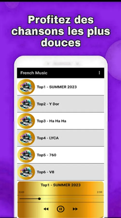 -The application of French songs without Internet is an application that brings together all the unreleased and exclusive songs.