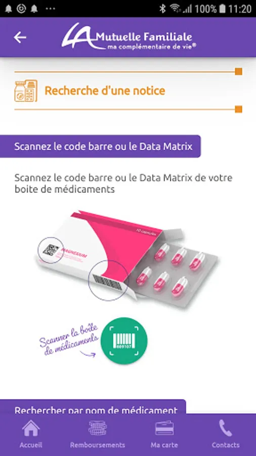 - Your membership card and dematerialized data matrix to justify at any time your rights with professionals and health institutions
