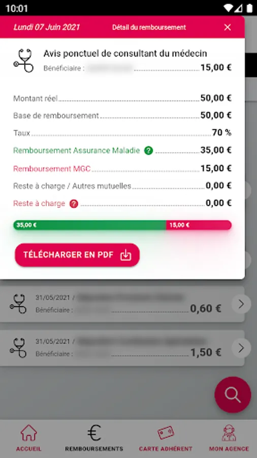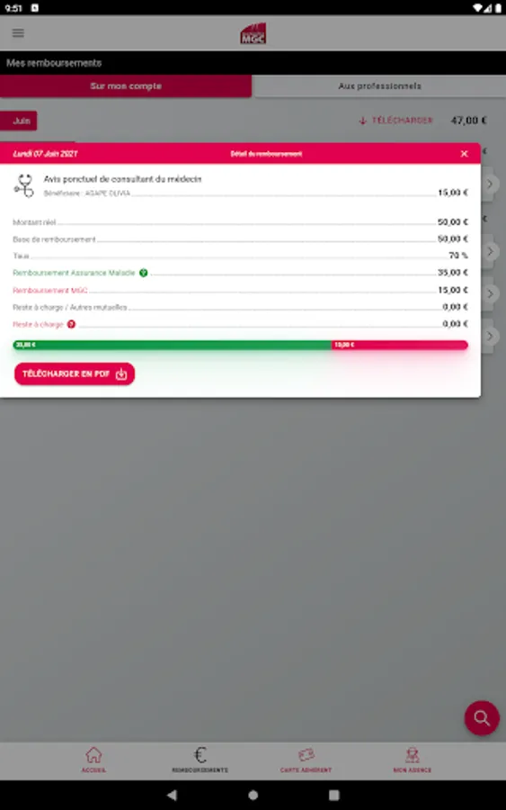 - Follow-up of your reimbursements with the possibility of downloading your statements and carrying out searches according to different criteria (date of treatment, beneficiary, type of procedures reimbursed, etc.)
