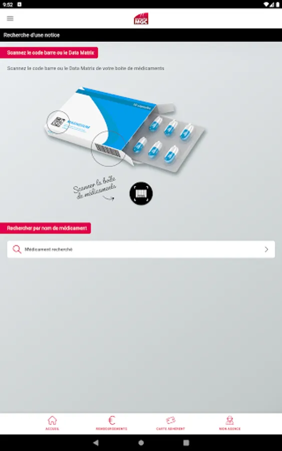 - Your dematerialized membership card and its datamatrix to be able to justify your rights to healthcare professionals and establishments at any time
