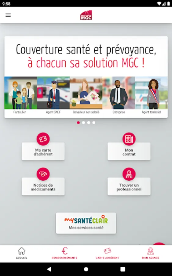 Members of the MGC, find at home and on the move on your smartphone and tablet the essential services of your mutual insurance: