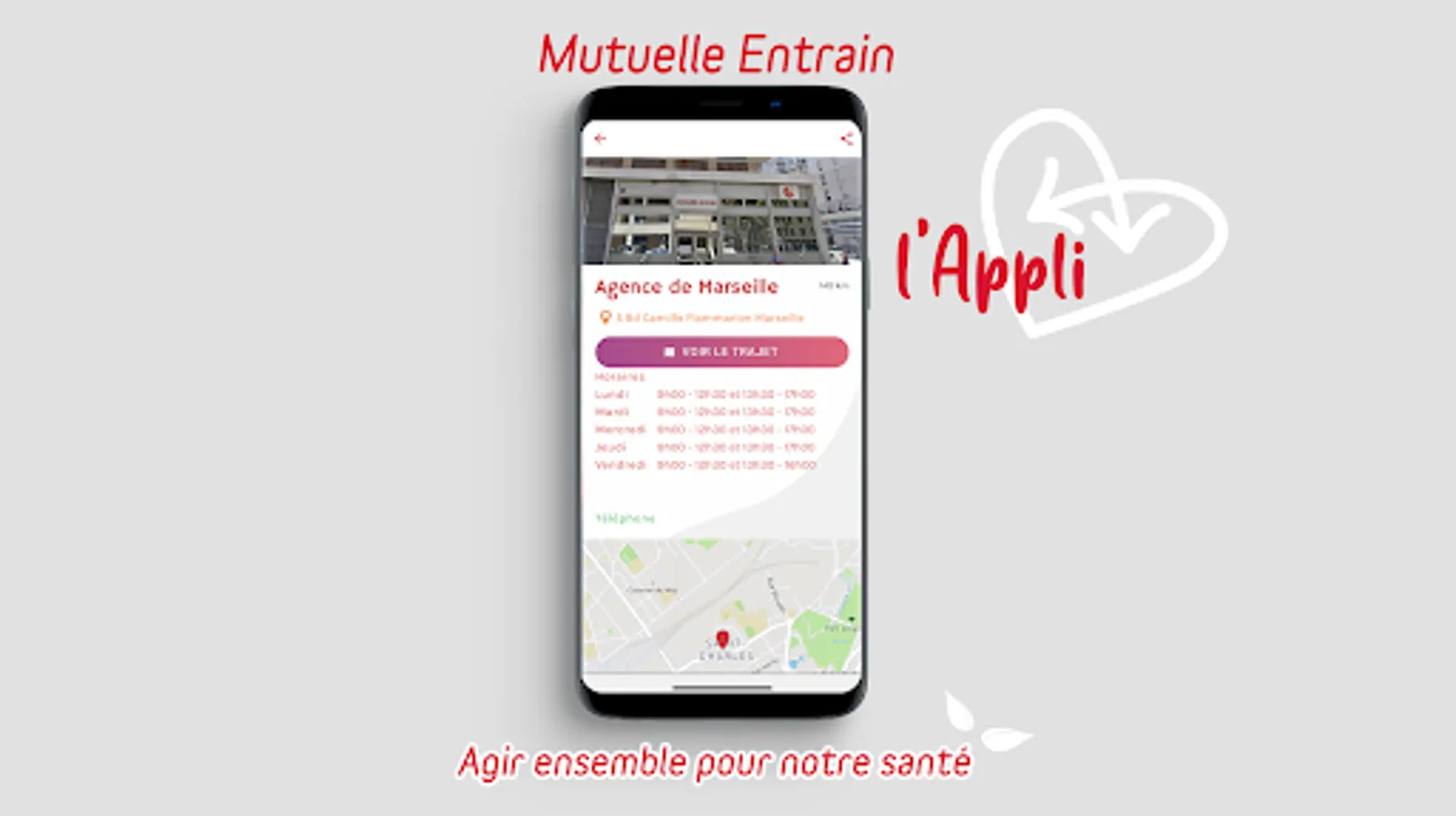 The Mutuelle Entrain application allows you to stay connected to your mutual insurance company 24 hours a day: member area with follow-up of your file 7 days a week, national news, actions of your section, prevention advice, location and opening hours of your agencies… Proximity and freedom, that's the promise of your health app!