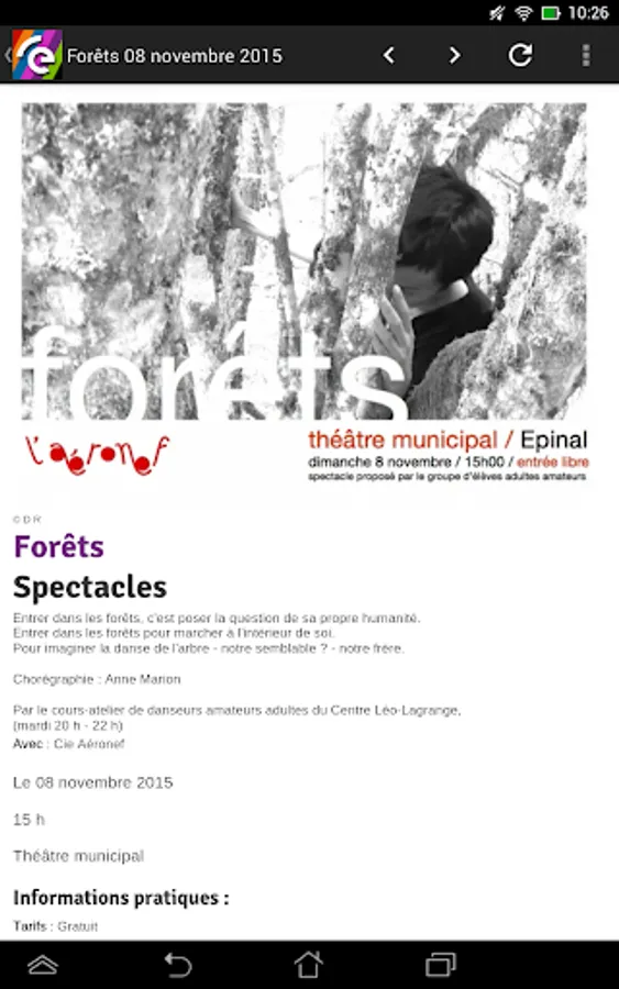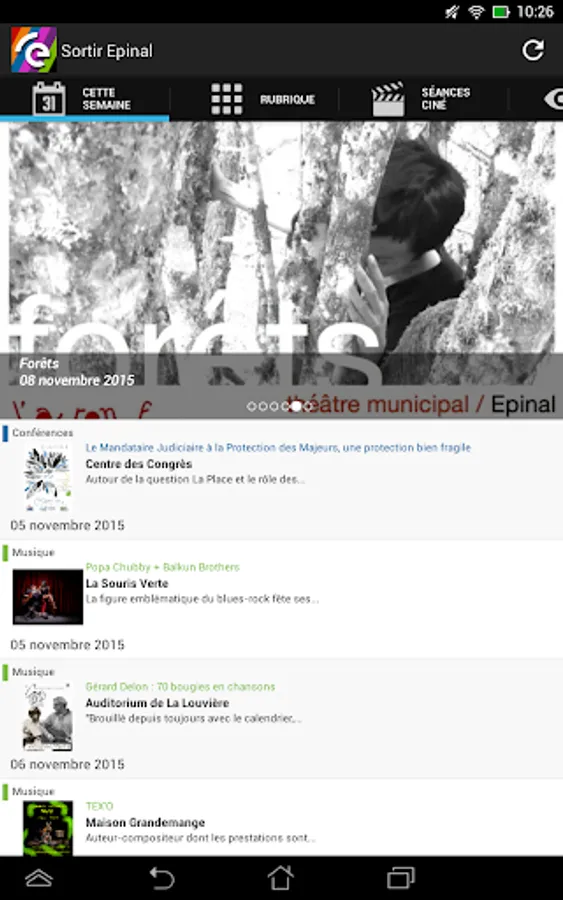 The "Exit Epinal" to discover all the cultural events, the main geo-localized outputs of the town of Epinal and its suburbs: movies, concerts, conferences, exhibitions, workshops, cultural practices, but also festivals and major events in the city