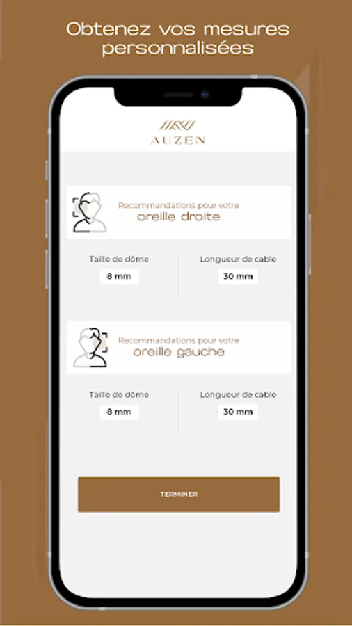 Thanks to its 3D scanning system, the Auzen Ear scan application allows you to precisely measure the size of your ears.