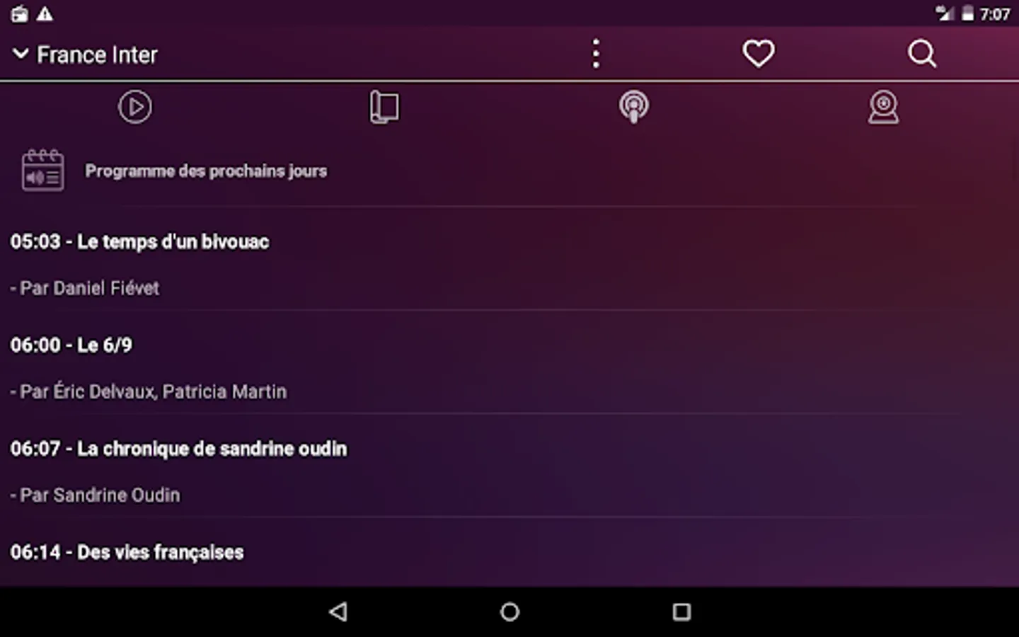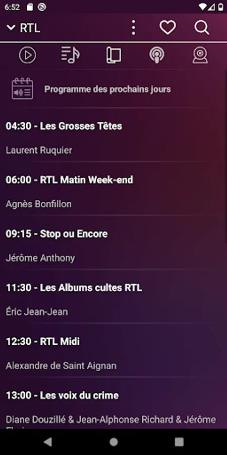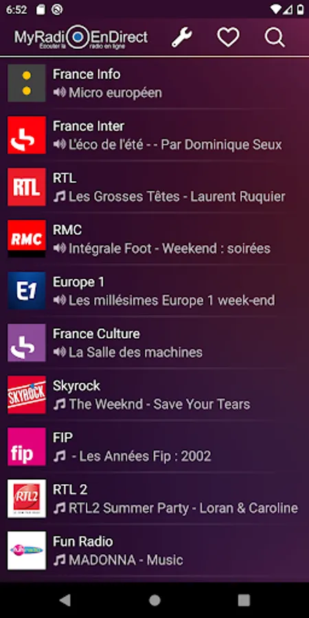 You will find below a non-exhaustive list of the radios that you have at your disposal. If you can't find your favorite radio station, click the search icon in the app header and type its name to find it. The search engine also supports voice search in case you are unable to type.