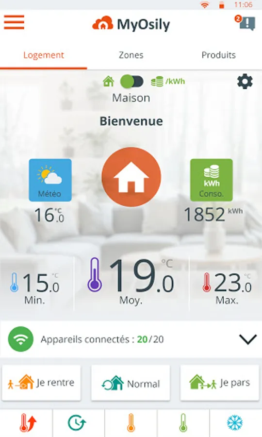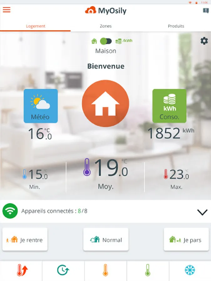 MyOsily, the free application for the intelligent control of your home, remotely manage your heating, your comfort, follow your budget, understanding and anticipating for perfect control.