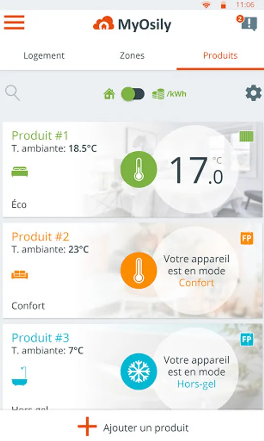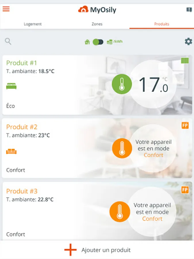 With MyOsily, view the connected devices in your home as you like, 3 levels of vision are offered: