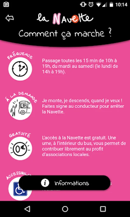 Download the free "The Shuttle" application to know in real time when the two vehicles are located on the route.