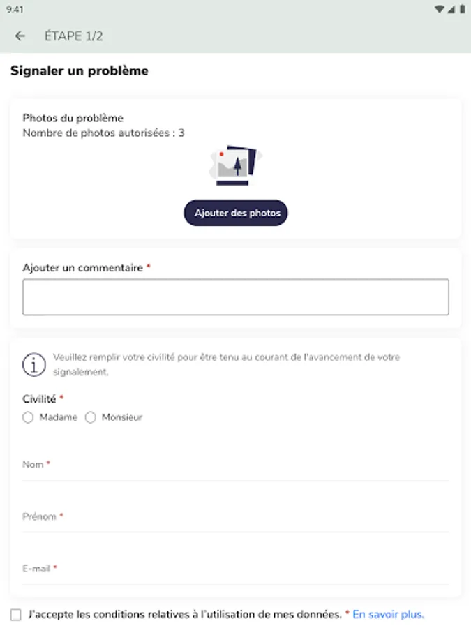 - Instantly report any anomalies you may encounter: damaged pavements, faulty public lighting, etc.,