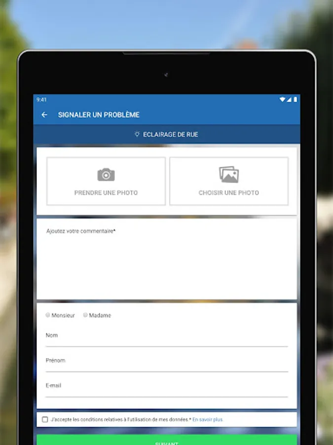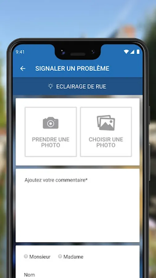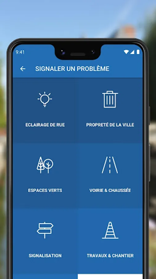 • Report incidents instantly that you may encounter: damaged floor, graffiti, faulty street lighting, etc.